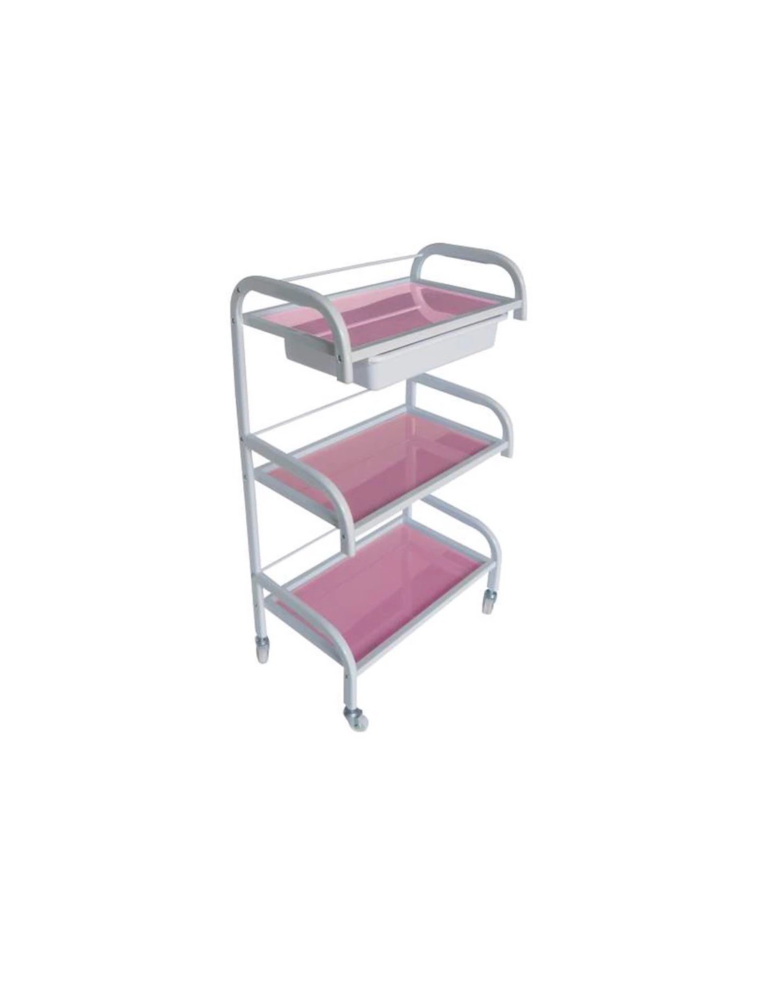 CARRO ESTÉTICA CRISTAL CON CAJON METÁLICO ROSA