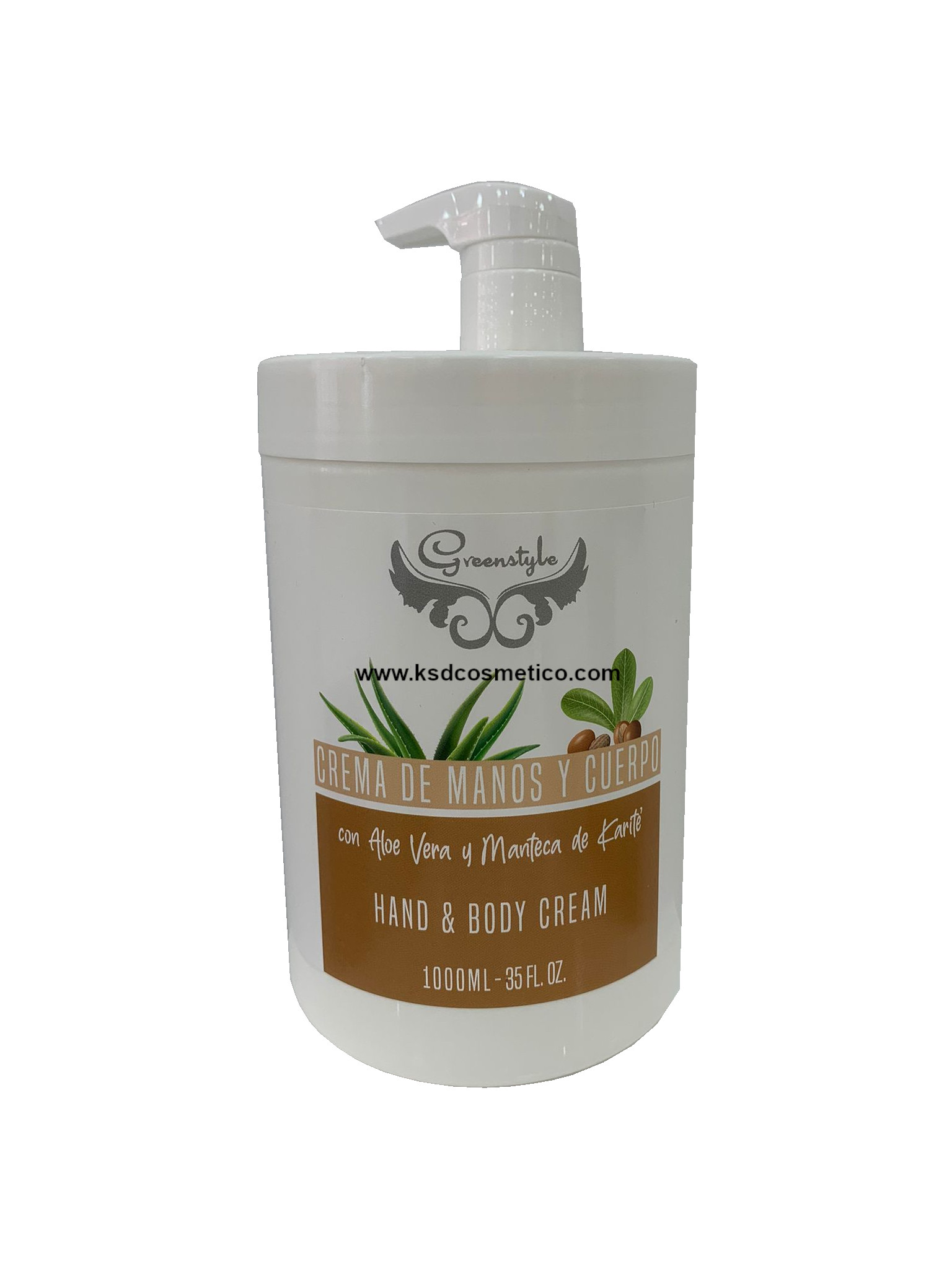Crema de manos y cuerpo Greenstyle con Aloe Vera y Manteca de Karité con dosificador.