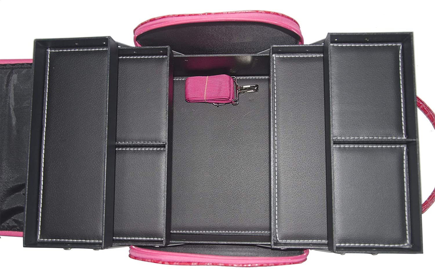 - Diseño elegante, El patrón de cocodrilo en relieve en el cuerpo del bolso y las asas agregan elegancia a esta caja de maquillaje de viaje, la parte superior abierta grande por la cremallera en ambos lados proporciona acceso completo a los artículos en el interior