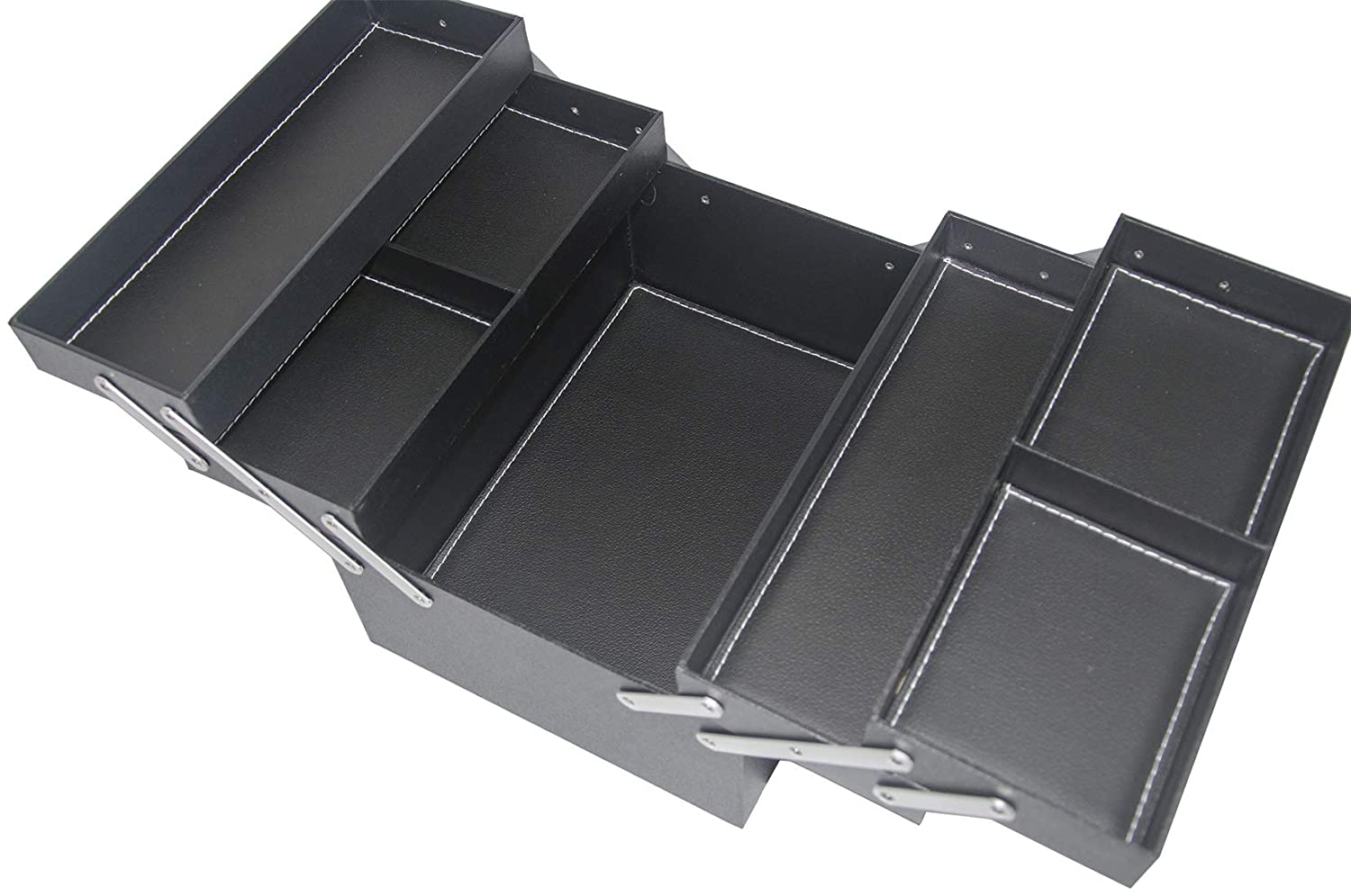 - Organizado y de gran tamaño, bandejas retráctiles deslizables con fondo acolchado, 3 niveles, un compartimento inferior grande sin divisores para más espacio de almacenamiento y artículos más grandes, perfecto para almacenar esmalte de uñas, herramientas de maquillaje, productos para el cuidado de la piel, etc.